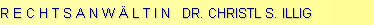 Rechtsanwältin Dr. CHRISTL S. ILLIG wurde 1961 in Stuttgart geboren und studierte an den Universitäten Tübingen, Innsbruck und Zürich Rechtswissenschaft und Volkswirtschaft.
